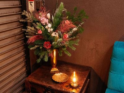 Fill your home or office space with vases of glorious, festive-themed flower arrangements. Whether it’s one stunning arrangement gracing your entrance, a long and low arrangement for the dining table or giant suspended floral installation– our floral designers will turn your interior into a floral ode to Christmas.